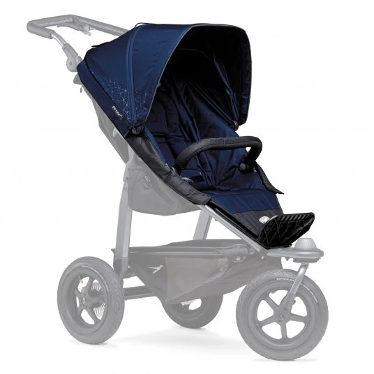 Der XXL-Komfortsitz für den Kombi-Kinderwagen Mono – Marine ermöglicht die Nutzung Deines Kinderwagens Mono über das Kleinkindalter hinaus. Auch Kinder im Kindergartenalter werden bei Wanderungen und längeren Aufenthalten im Freien irgendwann müde. Im Sportsitz können sie sich zwischendurch ausruhen – oder auch einfach mal die Augen zumachen. Die Rückenlehne des Sportsitzes ist stufenlos bis in die Liegeposition verstellbar um ihn optimal den Bedürfnissen Deines Kindes anpassen zu können. Hier findet Dein Kind im Alter von mind. 6 Monaten bis ca. 4 Jahre (Gesamtbelastung von 34 kg) bequem Platz. Zusätzlich ist der Wagen mit einem erweiterbaren Fußbrett ausgestattet. So kann Dein Kleines in jedem Alter bequem die Füße hochlegen. Sicherheit muss dabei sein: Deshalb ist die Sitzeinheit nicht nur mit einem Kopfpolster sondern auch mit einem gut gepolstertem 5-Punkt-Gurtsystem ausgestattet. Außerdem hat sie einen gepolsterten Schutzbügel, der sich für den leichten Ein- und Ausstieg öffnen lässt. Für Schatten im Inneren sorgt das große, ausziehbare Verdeck. Ein in die Rückseite des Sitzes integrierter Regenschutz kommt bei Bedarf zum Einsatz.
