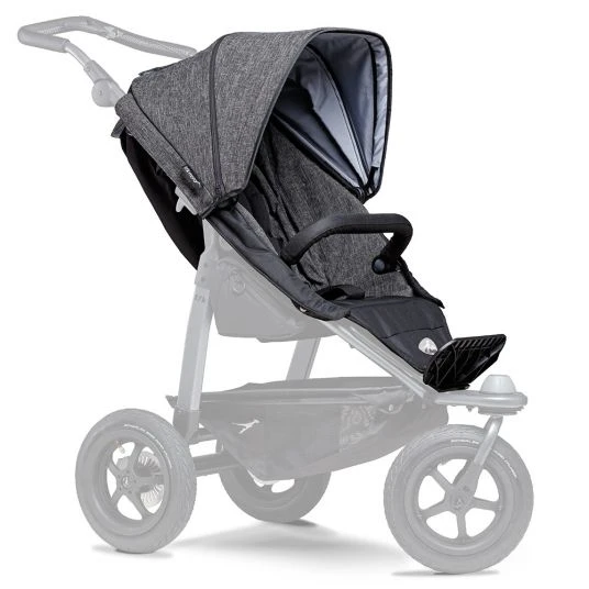 Der XXL-Komfortsitz für den Kombi-Kinderwagen Mono – Premium Anthrazit ermöglicht die Nutzung Deines Kinderwagens Mono über das Kleinkindalter hinaus. Auch Kinder im Kindergartenalter werden bei Wanderungen und längeren Aufenthalten im Freien irgendwann müde. Im Sportsitz können sie sich zwischendurch ausruhen – oder auch einfach mal die Augen zumachen. Die Rückenlehne des Sportsitzes ist stufenlos bis in die Liegeposition verstellbar um ihn optimal den Bedürfnissen Deines Kindes anpassen zu können. Hier findet Dein Kind im Alter von mind. 6 Monaten bis ca. 4 Jahre (Gesamtbelastung von 34 kg) bequem Platz. Zusätzlich ist der Wagen mit einem erweiterbaren Fußbrett ausgestattet. So kann Dein Kleines in jedem Alter bequem die Füße hochlegen. Sicherheit muss dabei sein: Deshalb ist die Sitzeinheit nicht nur mit einem Kopfpolster sondern auch mit einem gut gepolstertem 5-Punkt-Gurtsystem ausgestattet. Außerdem hat sie einen gepolsterten Schutzbügel, der sich für den leichten Ein- und Ausstieg öffnen lässt. Für Schatten im Inneren sorgt das große, ausziehbare Verdeck. Ein in die Rückseite des Sitzes integrierter Regenschutz kommt bei Bedarf zum Einsatz.
