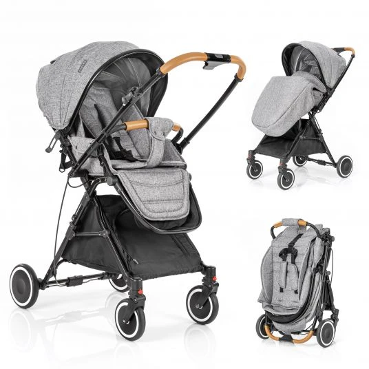 Der Buggy ist ein wahres Leichtgewicht und wiegt nur etwa 7 kg. Außerdem kann er mit nur einem Handgriff auf ein kompaktes Mini-Format zusammengeklappt werden: Dabei faltet sich der Wagen automatisch zusammen und steht anschließend selbstständig. So kannst Du ihn auch mit Kind auf dem Arm zusammenklappen. Zusammengelegt passt er in fast jeden Kofferraum, eignet sich aber auch prima für die nächste Flugreise.