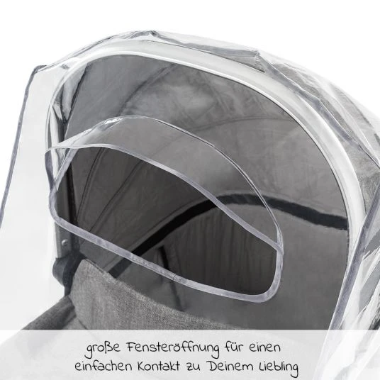 Die praktische Fensteröffnung ermöglicht Dir den einfachen Kontakt zu Deinem Liebling und sorgt für ausreichend frische Luft. So erreichst Du Dein Kleines besser und kannst jederzeit das Fläschchen reichen, ohne den Regenschutz jedes mal abnehmen zu müssen. Ein Vordach darüber schützt zuverlässig vor Regentropfen. Dadurch kann die Luft gut zirkulieren und das Innere des Kinderwagens bleibt trotzdem trocken.