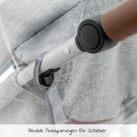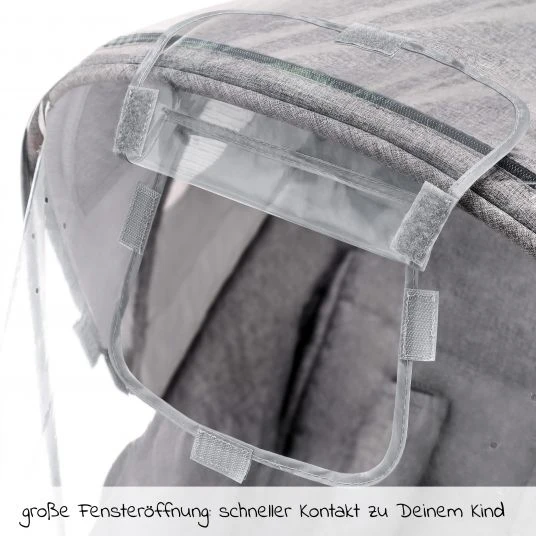 Außerdem erreichst Du Dein Kleines ganz einfach, z.B. um das Fläschchen zu reichen. Bei Regen und Wind machst Du es zu und hältst es per Klett verschlossen. Der hochwertige Klettverschluss greift perfekt ineinander, klebt aber nicht an der Kleidung. Befestigt wird der Regenschutz mit unterschiedlich angebrachten Klettverschlüssen. So lässt er sich ganz leicht befestigen und wieder lösen.